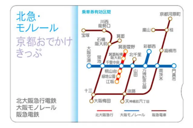 毎年春と秋の行楽シーズンのみ販売されており、阪急宝塚線と京都線、北大阪急行全線、大阪モノレール全線が1日乗り放題です。