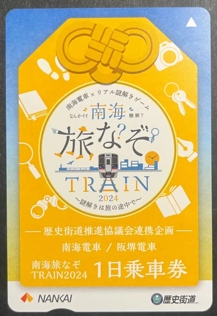 謎解きキットに、南海電鉄全線(関西空港駅、高野山駅を除く)+阪堺電車全線で使える1日乗車券が付属しています。